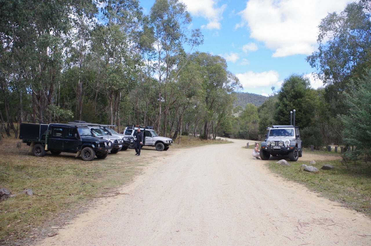 Anzac Day was fine and a little chilly when we departed from Williamsdale. Your trip leader was the last to arrive and as such gets to write the trip report. We had a leisurely drive down to Jindabyne where we topped off tanks and headed to Tom Groggin camp ground for lunch and airing down.