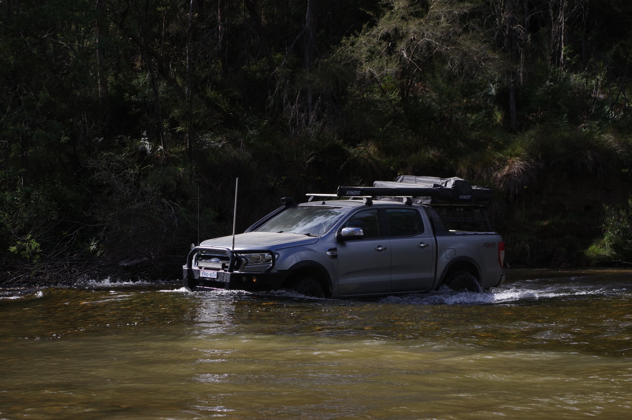 We all headed across the river without incident although Byron had a couple of goes at ascending the quite cut out climb on the Victorian side. Mackenzie’s jeep made it up without lifting a wheel, such is the articulation of a Wrangler with sway bar disconnects.