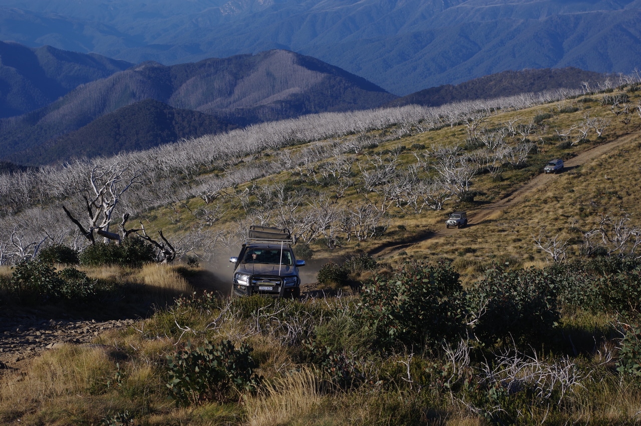 We climbed up the “easy” Tom Groggin track and then headed around to the top of the Mt Pinnibar track via the Mt Anderson Track. Mackenzie discovered that the Wrangler had a misbehaving Rzeppa joint on her front drive shaft that clicked and made noises when load was placed on it in 4WD. This was remedied by using skill to drive the majority of the climb in 2WD High range to avoid further damage. A Rzeppa joint is a type of CV joint that is on the transfer case end of the drive shafts (It’s a Jeep thing, I don’t understand)