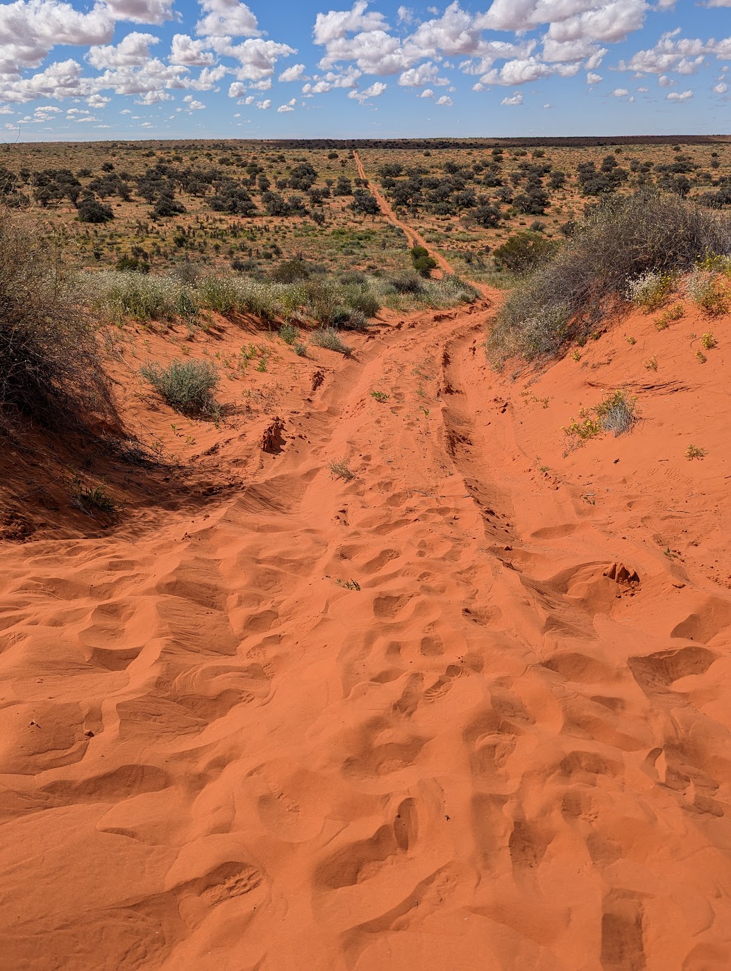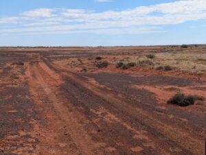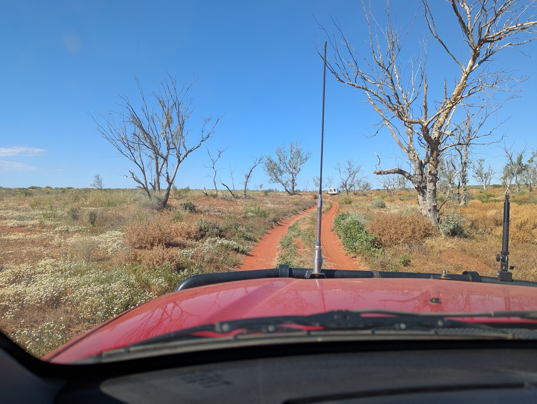Driving west along the WAA Line the track is straight and seems to go on forever over many sand dunes and claypans. We did not meet any other vehicles along this track.