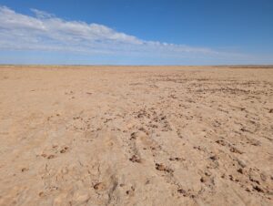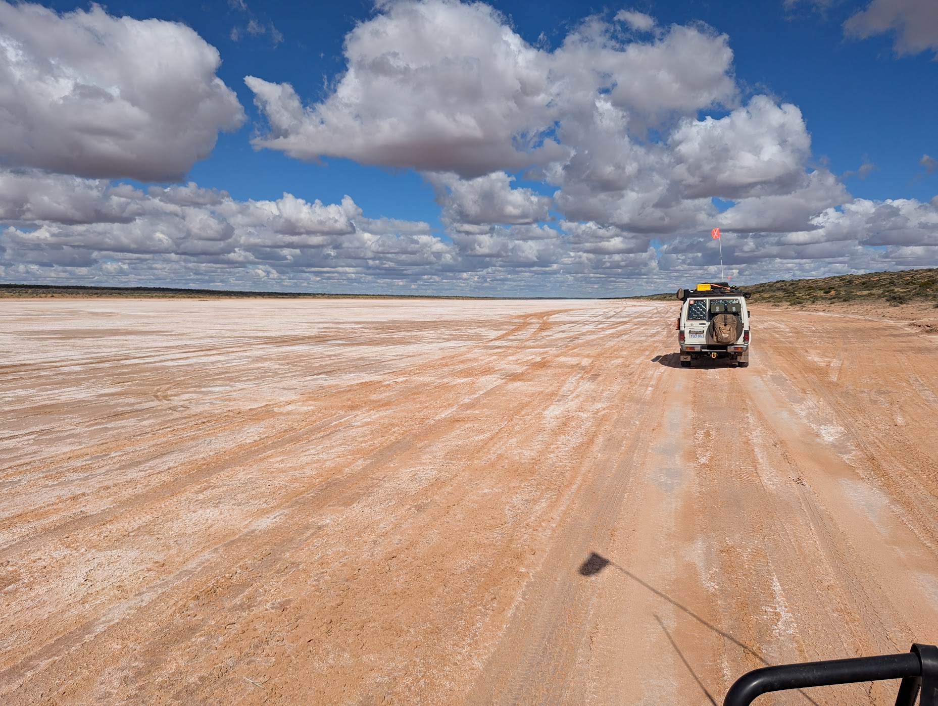 The track got easier and easier with fewer sand dunes but the corrugations returned. We travelled along many claypans with some diversions due to the west/muddy track. You would sink quickly if you ventured off the track here.