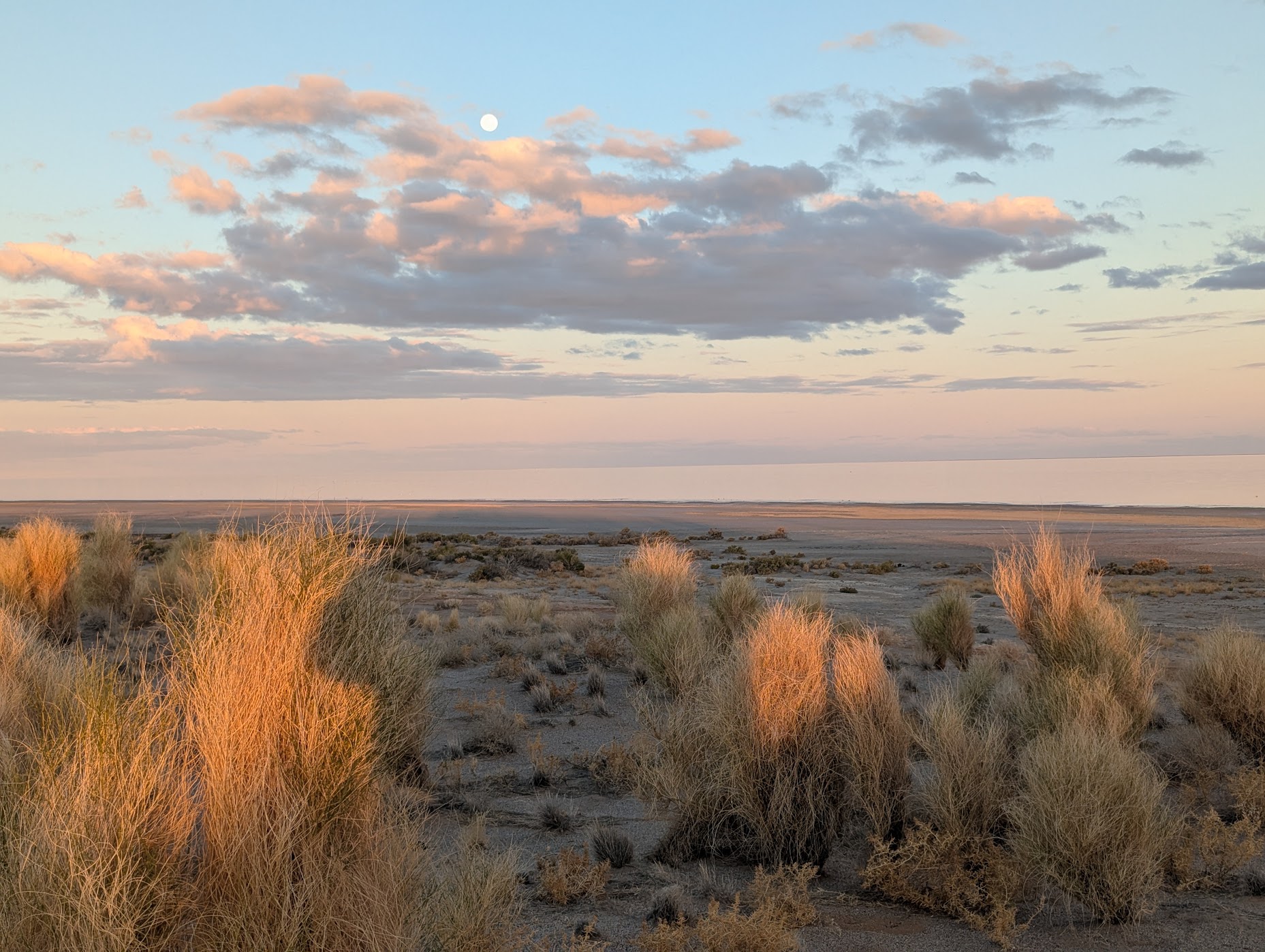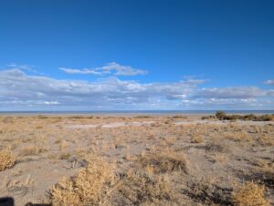 In addition to the rough corrugations there was soft sand, bulldust holes and the odd limestone rocks on the road to Halligan Bay. The vegetation was sparce and sometimes the country looked like a desolated mine site. Lake Eyre Kati Thanda was full of water. It felt like we were looking at the ocean except for a lack of waves and tides. This is Australia’s largest salt lake and, at its lowest point, is 15.2m below sea level.