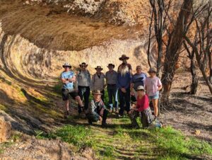 The ranger station and lakes drives were still closed following the Paroo River and its tributaries flooding. Exploring old Caiwarro homestead provided us with a history lesson as we wandered around the ruined buildings, tennis court, stockyard and machinery relics. Caiwarro and Corni Paroo waterholes were, or course, full. Budjiti and Mt Torrance lookouts provided spectacular views of the park and the Granites Walk took us around the base of the culturally significant outcrop. Our final night in the park was by the semi-permanent wetland at Myninya camp.