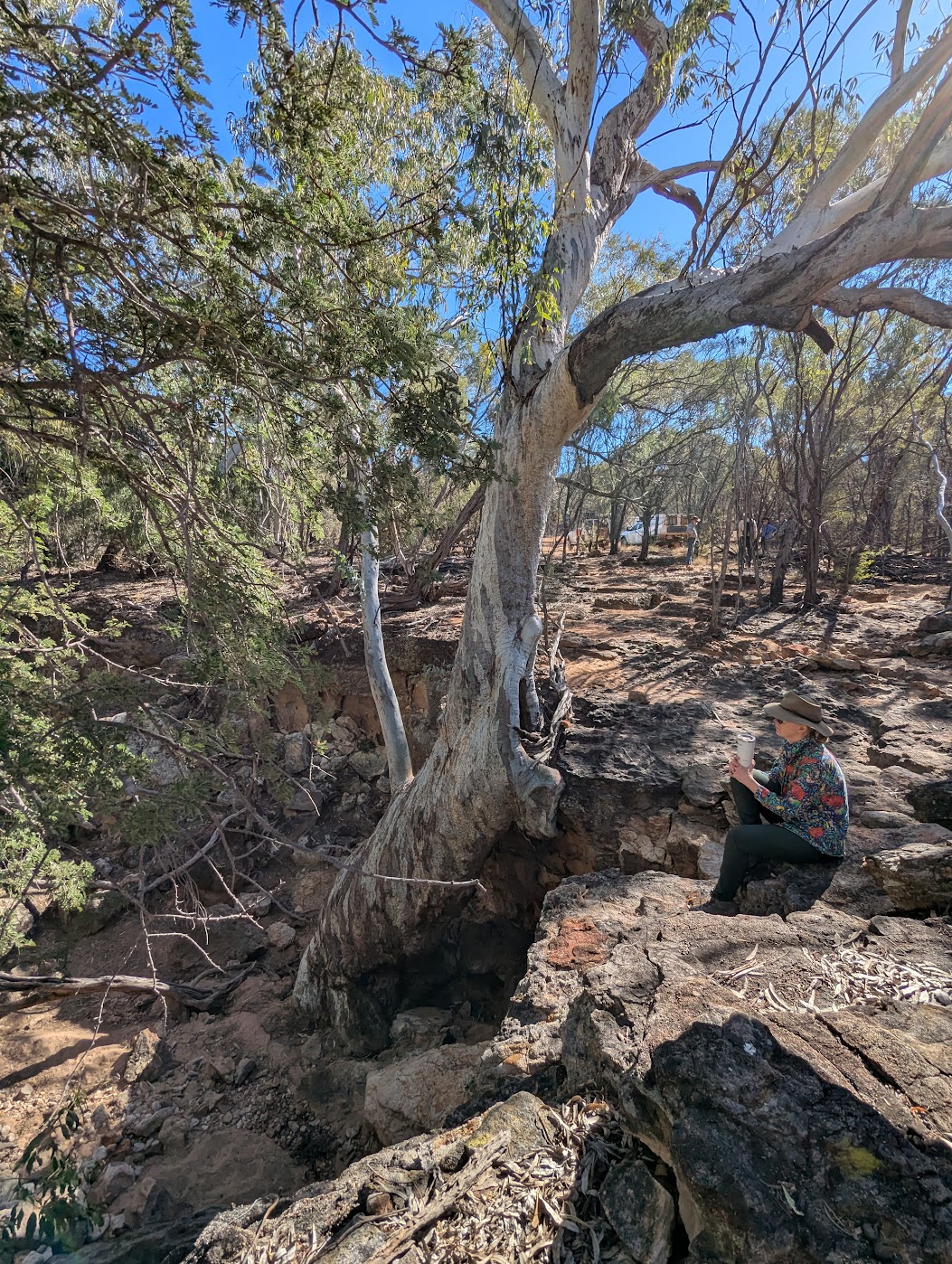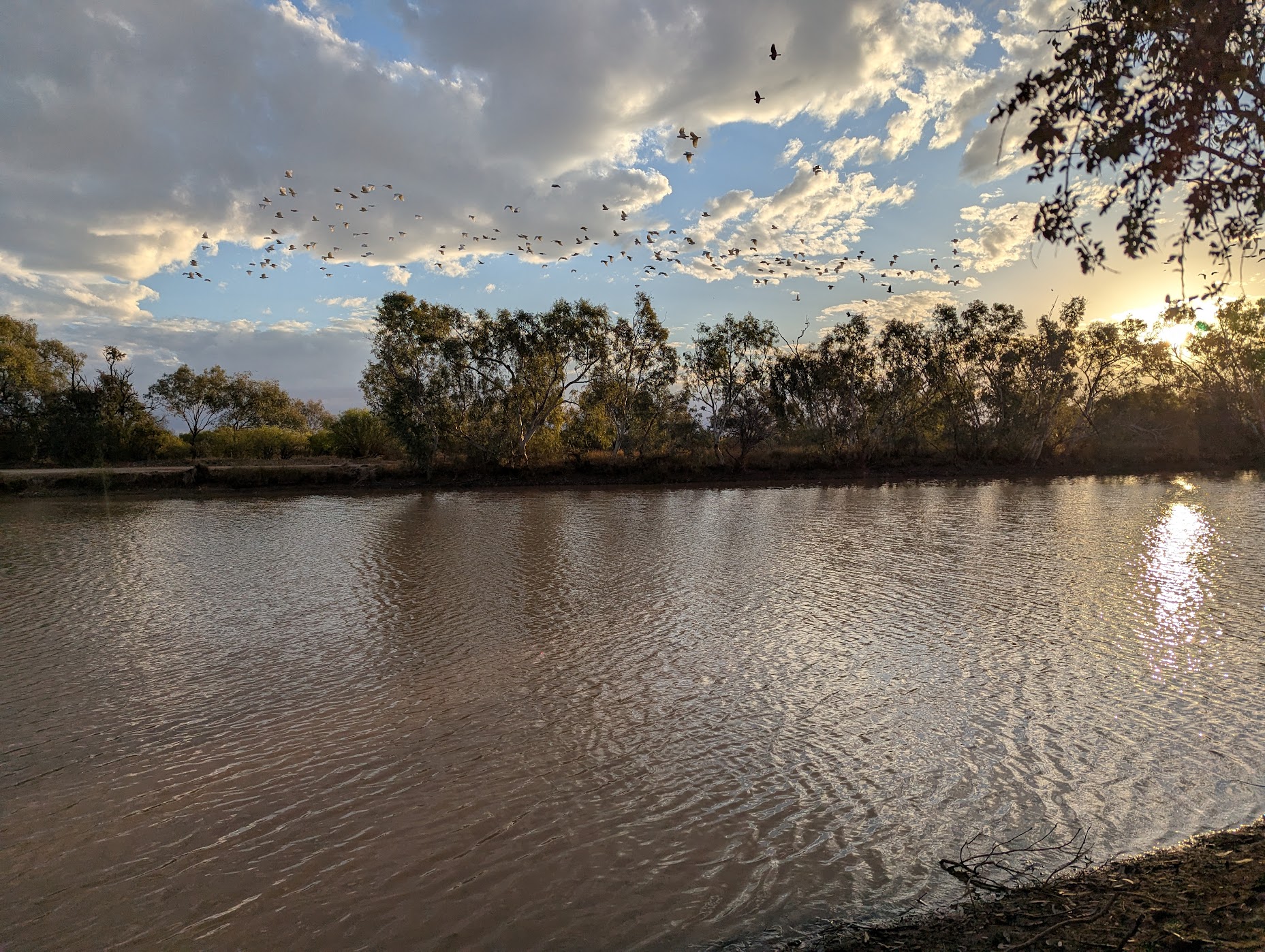 Our stop for the night was Gum Hole campground on the banks of Whistling Duck Creek under the coolabah and bauhinia trees. The sunset bird show was entertaining if not noisy.