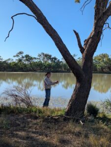 Little Boomerang camp is on the Barcoo River at a large, permanent waterhole lined with coolabahs. Brian caught a yellow belly but no yabbies. We were the first campers at Welford following the floods.