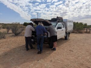 While vehicles were serviced and prepared for our journey, unexpected breakdowns happen and repairs are required. The following mechanical issues did occur and were fixed with much advice and cooperation of group members and professionals.