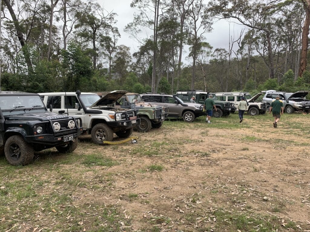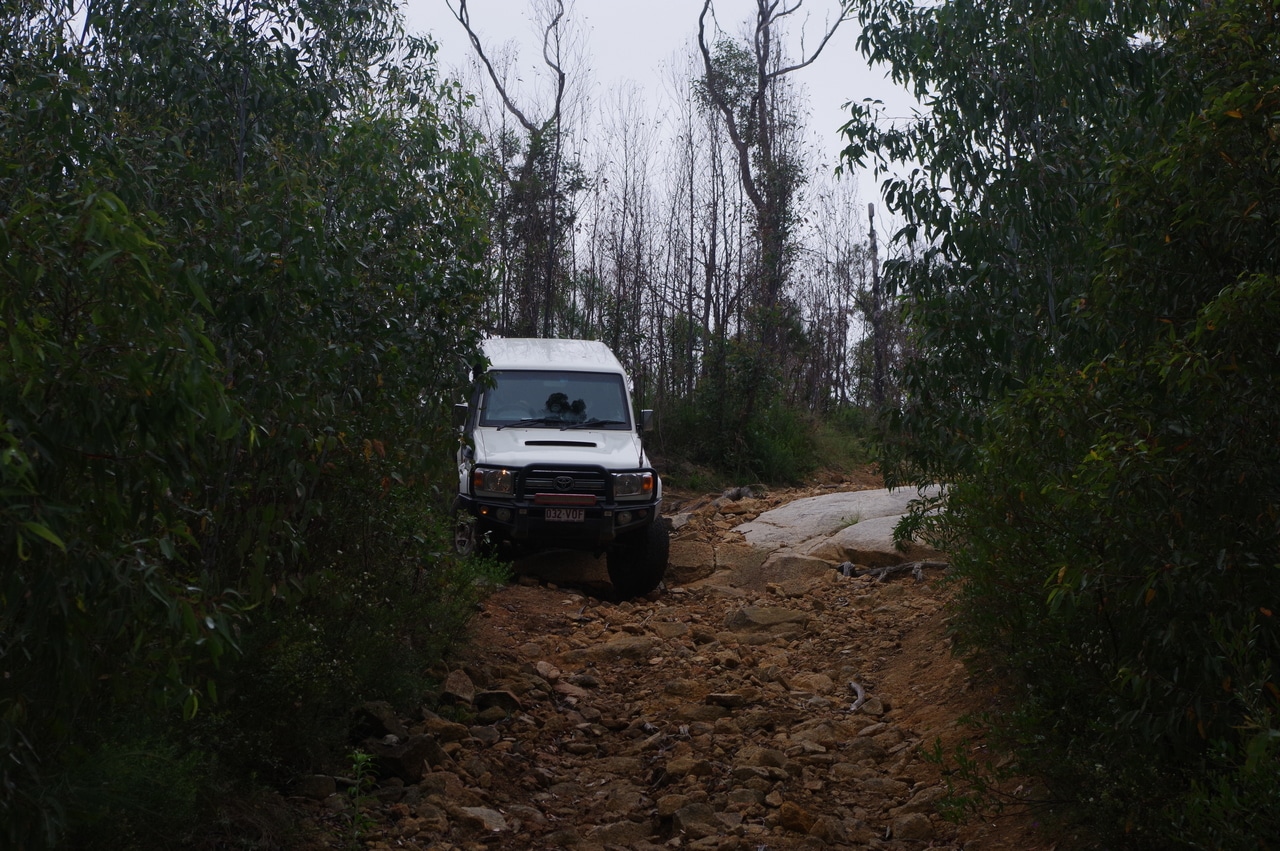 On a cloudy Saturday morning we met up at Bungendore sports ground for the trip down the Clyde. The weather got progressively more damp and most of the Clyde was covered in misty rain. After a small delay caused by an overturned Navara we all made it safely to Black Flat Road where we regrouped and did a U turn to the start of Downfall Fire Trail where most of us aired down. The weather stayed cool and cloudy for most of the day, but it was a wet trip back up the Clyde.