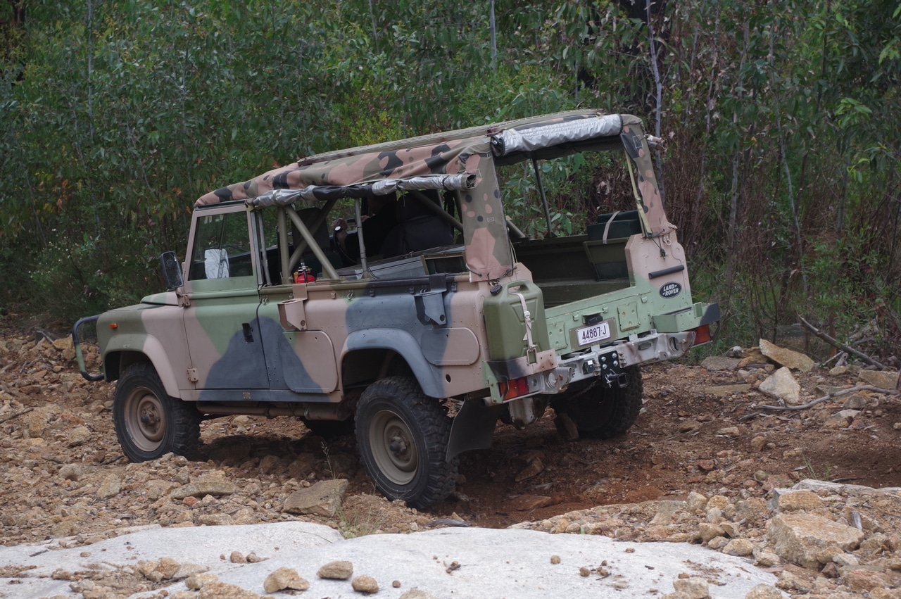 We climbed the initial ascent one at a time, calling the next vehicle through as each of us made it to the top safely and had morning tea when we were all up. From there we ventured along the track until Tony encountered an obstacle on a short uphill section that was quite rutted with the rear diff pumpkin on the Perentie sitting on a rock. After a bit of reorganisation we got to practice some recovery techniques which included joining two snatch straps together for an unsuccessful (gentle) snatch recovery. We then decided to attempt a single line winch pull to recover the vehicle, however it was stuck solidly enough that the winch nearly stalled so we inserted a snatch block in the rig and that gave us enough power to get the Perentie back on track to where it could be driven out.