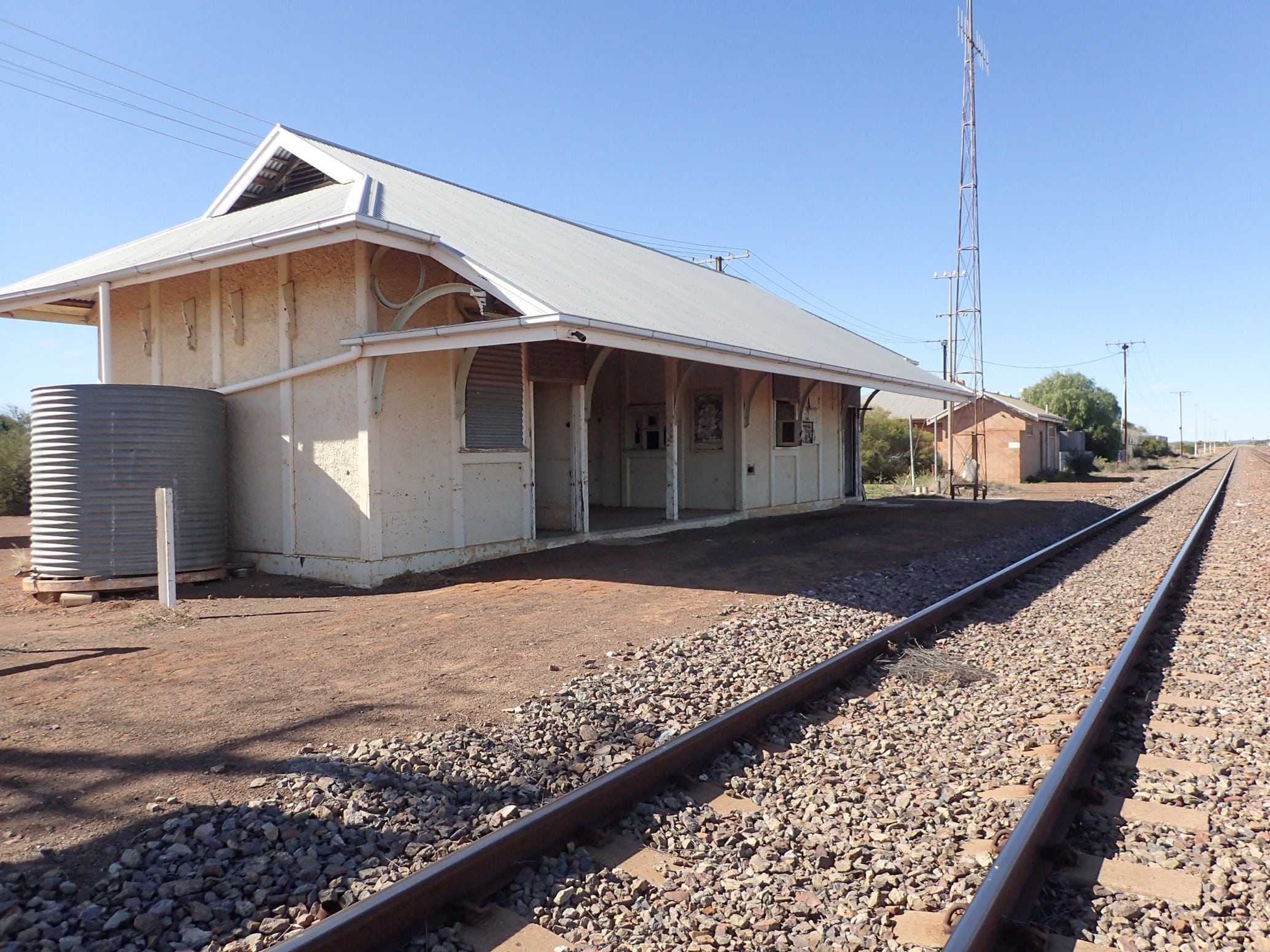 Turning east we hit the gravel super-highway and followed the dog fence and railway line to Tarcoola. The Tarcoola of Goog’s time was a busy gold mining town but today it has no permanent residents. The nearby gold mine is still operating. We stopped at the original railway station, stretching our legs with a game of paddymelon soccer.