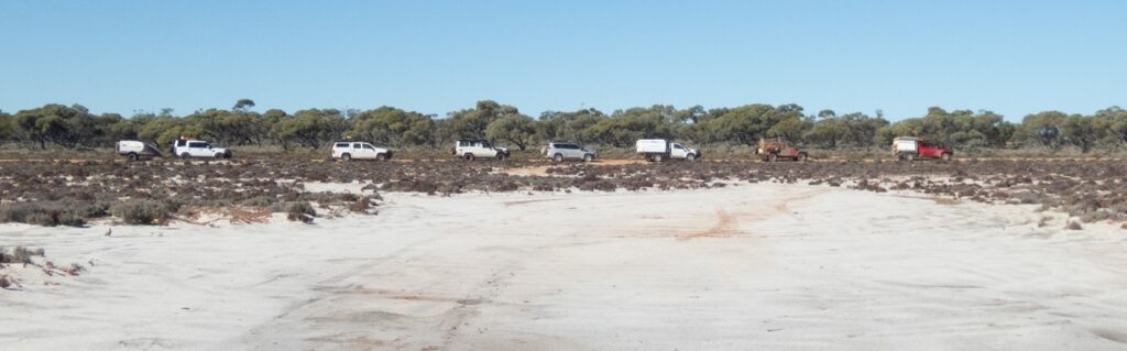 It was a mid-morning departure from Mt Finke, stopping a short time later at some salt pans. Care needs to be taken here as driving on the salt pan could lead to a sunken vehicle. We still had 40km of sandhills to navigate before the end of the track. The track became more interesting with a mix of sand, dunes, rocks and rock platforms. Crossing the East West Trans-Australian railway signified the end of the Goog’s Track.