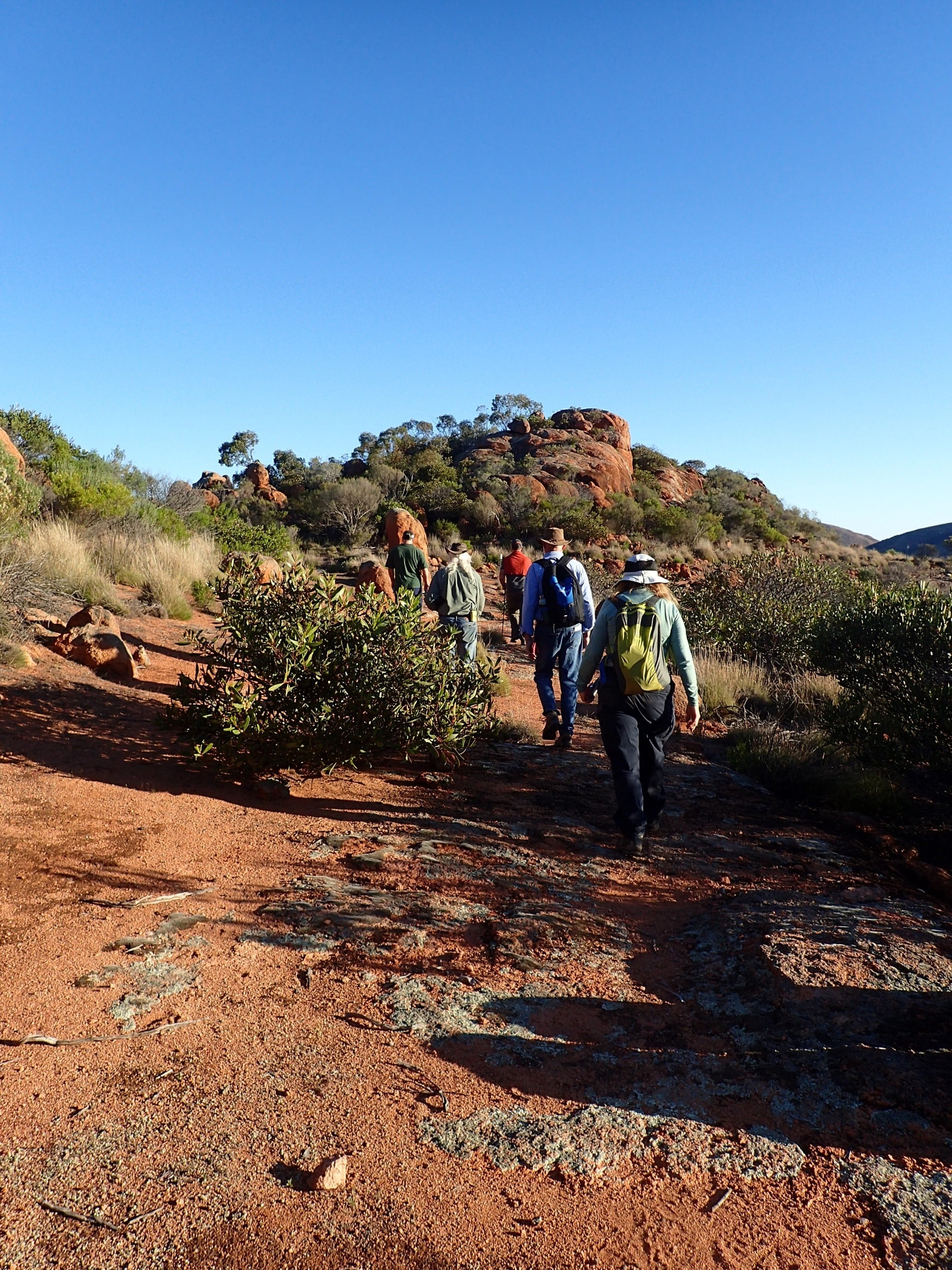 The Pretty Point campground in Hiltaba Nature Reserve was ‘pretty’ and protected us from the windy night. Taking advantage of the track head at the campsite, the group took on the Betty and Bob Lewis 2km walk. Meandering through stunning granite boulders the walk provides views across the rocky landscape towards Mt Hiltaba and Barber Hill.