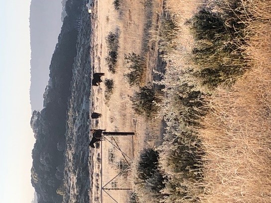 When we all emerged from our warm cocoons after a very cold night we were greeted by a white frost.  Estimated minimum temperature overnight was minus 6!   Ouch!   Items left outside were frozen, as were some camper water lines.  Water in containers was partially solid.  Those with butane gas found their early morning cuppa was not possible because the gas was liquified.  The brumbies didn’t mind the cold and kept grazing.