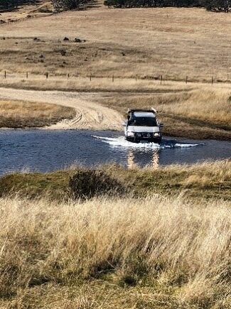 It was about an hour’s drive to the Park gate.  So off we set.  It was a pleasant drive initially backtracking up to Nimmo Hill then NW across the Snowy Plain.  The roads were not too rough but we had three water crossings.  Two crossings were 40m wide and about 400mm deep with fairly solid rocky bottoms.  All three cars managed the crossings without issue.