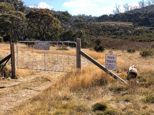 Wallace’s Hut is on private land (Snowy Vale) but walkers are welcome.  From the Snowy Vale gate to Wallace’s was about a 10 minute walk.