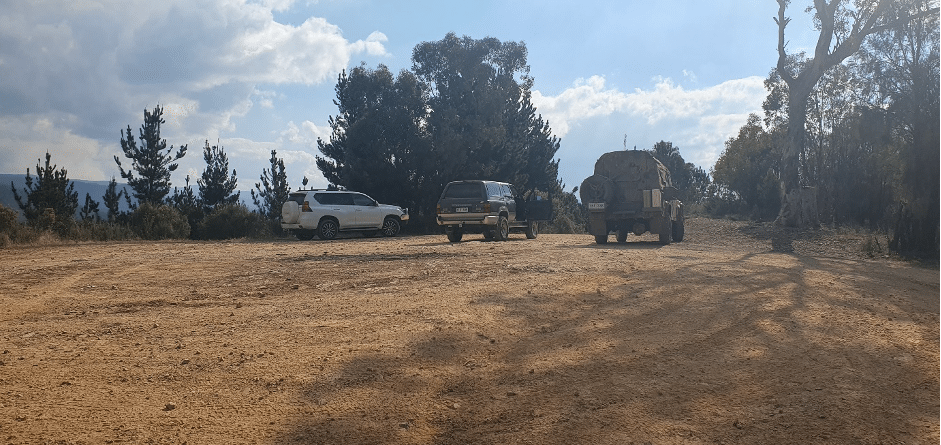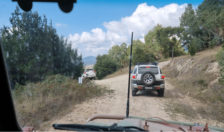 The first bit of dirt driving was left onto Pierces Creek Road, below Sugarloaf Hill, and it wasn’t long before we encountered some rangers who were undertaking a large baiting program in the area. Onwards we travelled, taking some left turns onto Pipeline Road and passing the Vanities Crossing road on our right, before turning onto another track…..