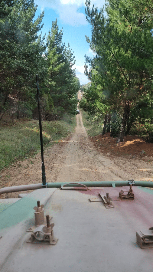 I tried to get Quentin to overtake the Perentie on the windy two-white-lines road out of the Cotter reserve, but he wouldn’t. Didn’t bode well for future instructions from the passenger seat…..