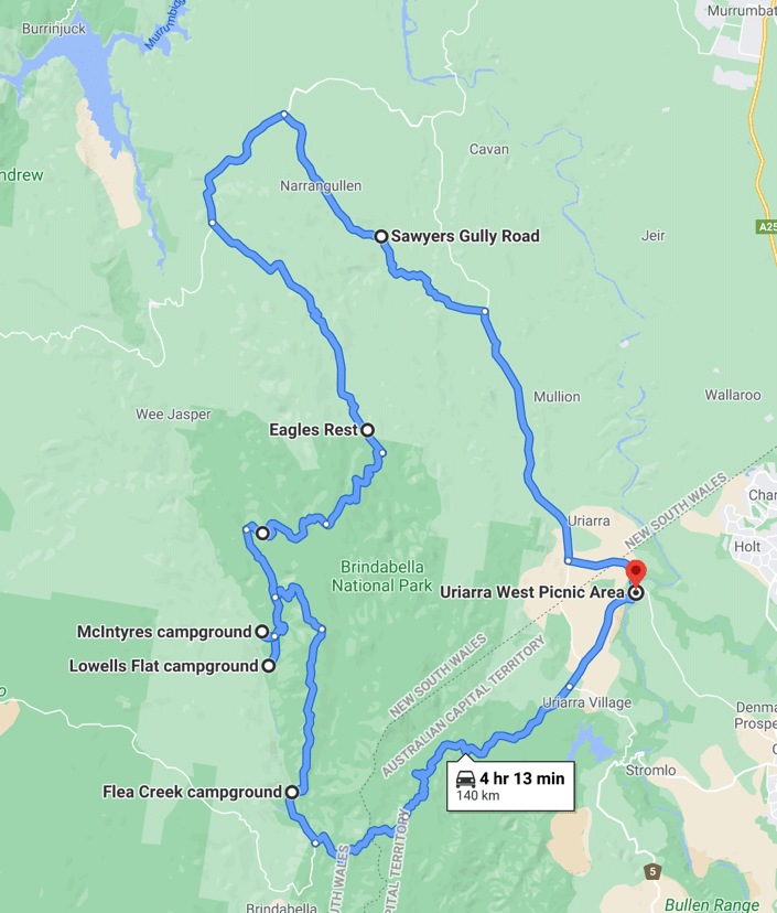 We met up at Uriarra Crossing on the Sunday Morning, although a few of us were a bit slower getting there as early as we had planned as there were an enormous number of cyclists on the road. This was a section of the Five Peaks ride event and the riders went along Uriarra Road before turning left onto Brindabella and subsequently back via Cotter Road before their first peak of Mt Stromlo. While Eric and Julie managed to pass a small number, we basically gave up on getting past the peloton and simply stayed in the cycling pack for about 4 Km. A few cyclists whom Eric had passed earlier even managed to pass him.