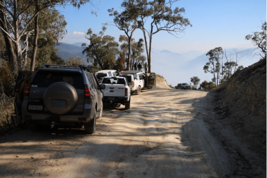 We went through the Brindabellas along Brindabella Road heading for Tumut and turned off onto the Gentle Annie Trail. Russell remembered that it was a bit rough the previous time so we reduced tire pressures as soon as we turned onto it. Most people set their pressure to about 30psi. The original plan was to include a trip to the top of Mount Coree but access was closed due to fire hazard reduction activities.
