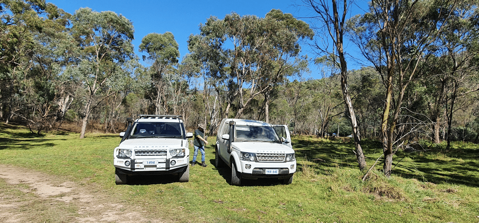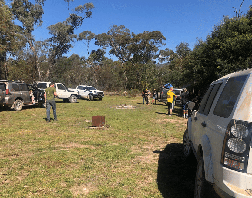 We then drove down to Lowell’s Flat campground via Waterfall and McIntyres Trails. There we caught up with the weekend camping group for lunch. Never having been there before, I was surprised just how nice a campground it is, much nicer than Flea Creek. It has a large swimming hole that also holds trout that were caught and eaten by the other group who camped there. We had lunch with the other group and then we all dove to McIntyre’s Hut and campground. The drive was quite steep downwards with some tight curves and we were probably all in low range.