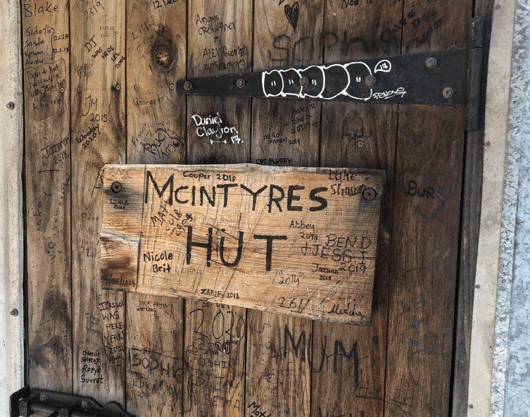 The hut was rebuilt after the 2003 Canberra bushfires which started in this area. Note in the photo of the door that the dates left by the tourists are all quite recent.