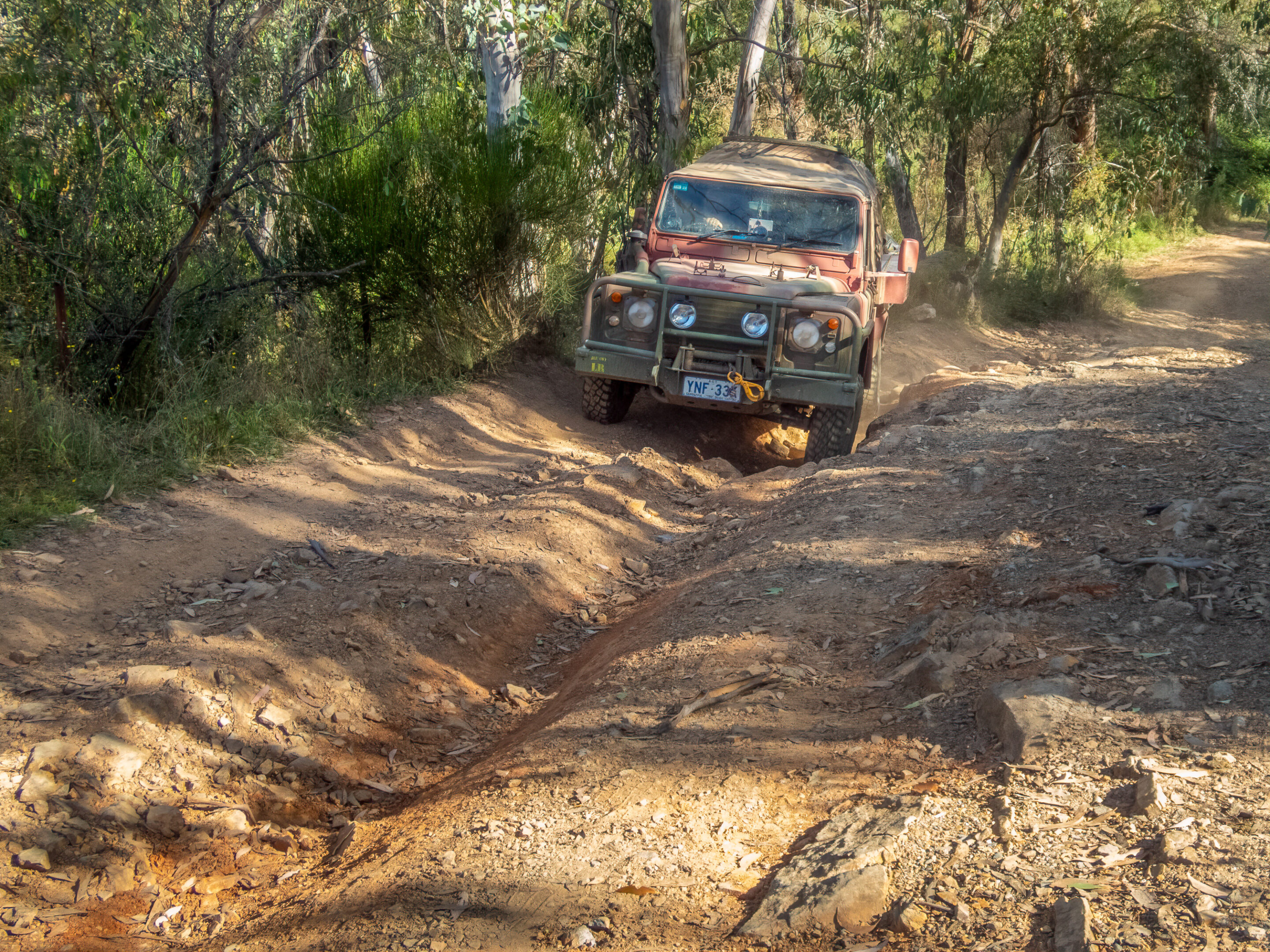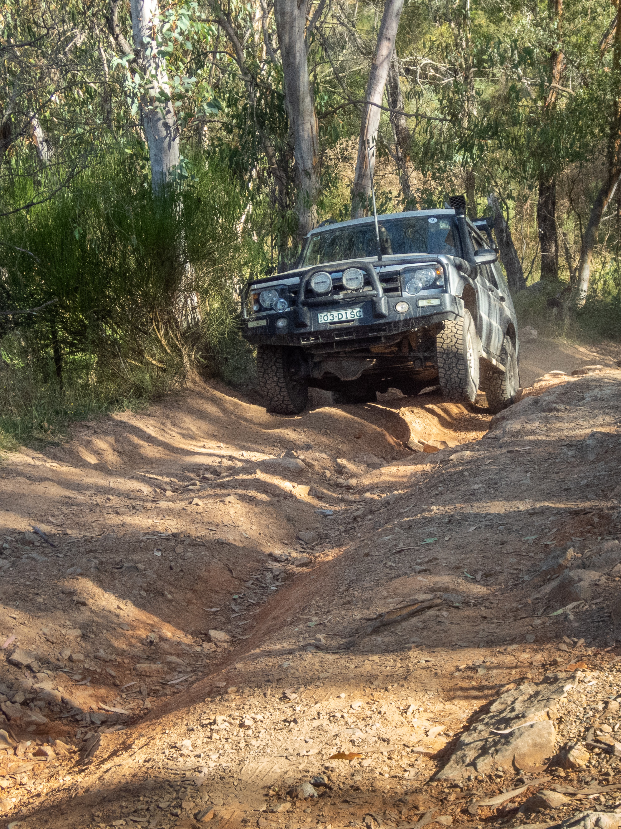 The driving became a little more challenging as we twisted and turned our way along the fire trails crossing creeks, ascending and descending many steep slopes, following a creek bed, traversing up rock ledges and down rock slopes, driving across washouts and gutters.