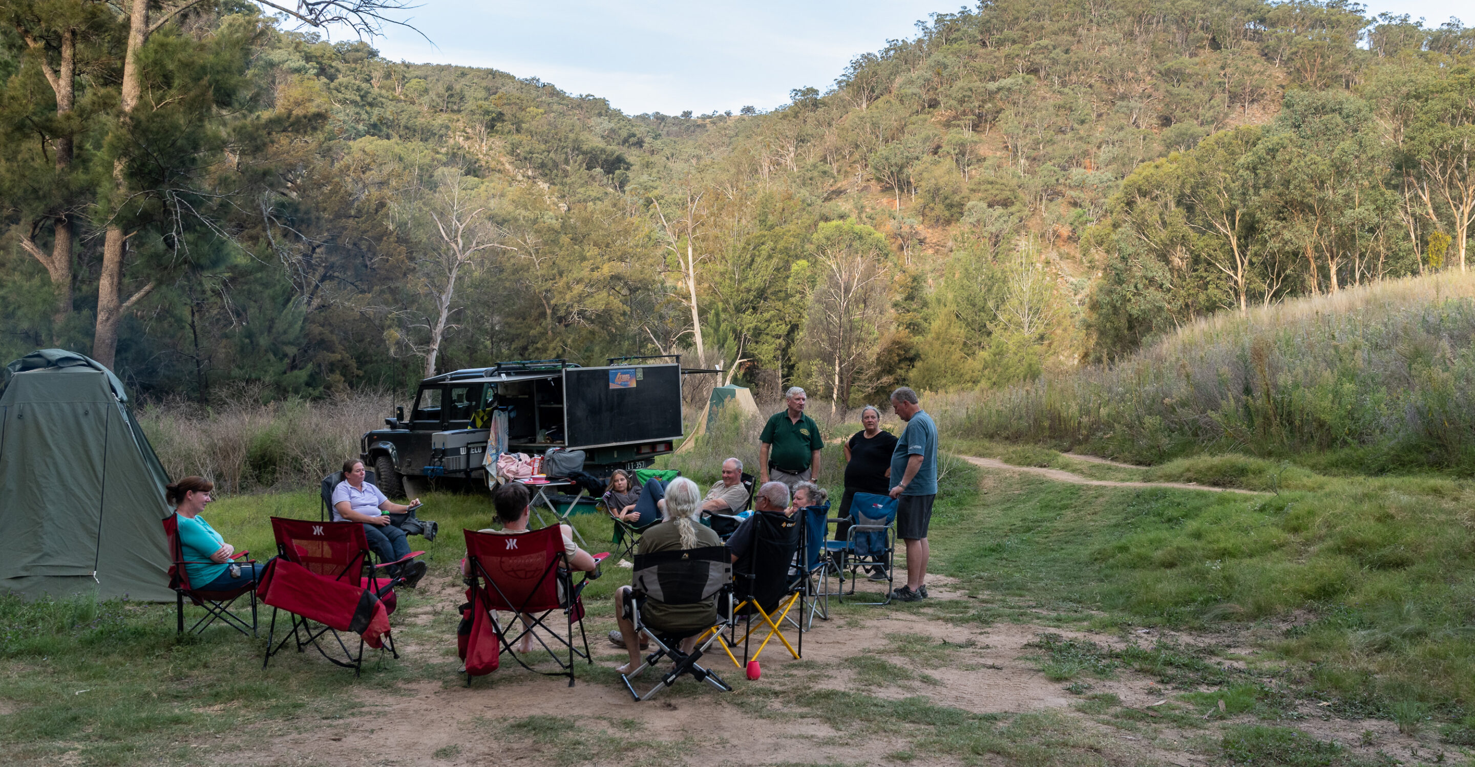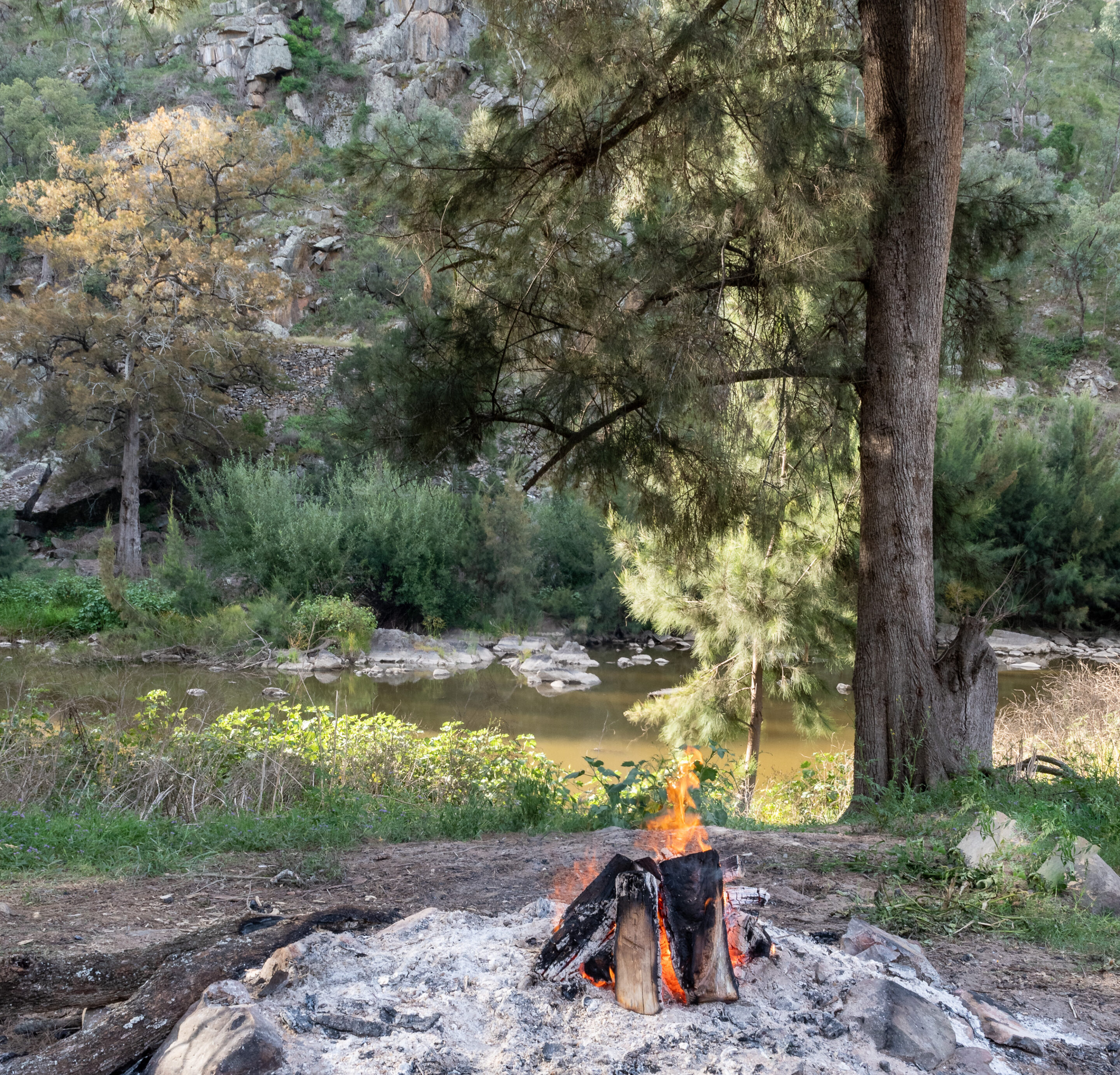 It was a long afternoon at the wheel, finally arriving at Woolshed Flat campground in the Turon National Park via the Pinnacle Fire Trail.  The campsite was quite popular with many groups camping along the river.  The LRC group found a bush area to camp and we settled in for a relaxing night around the campfire.