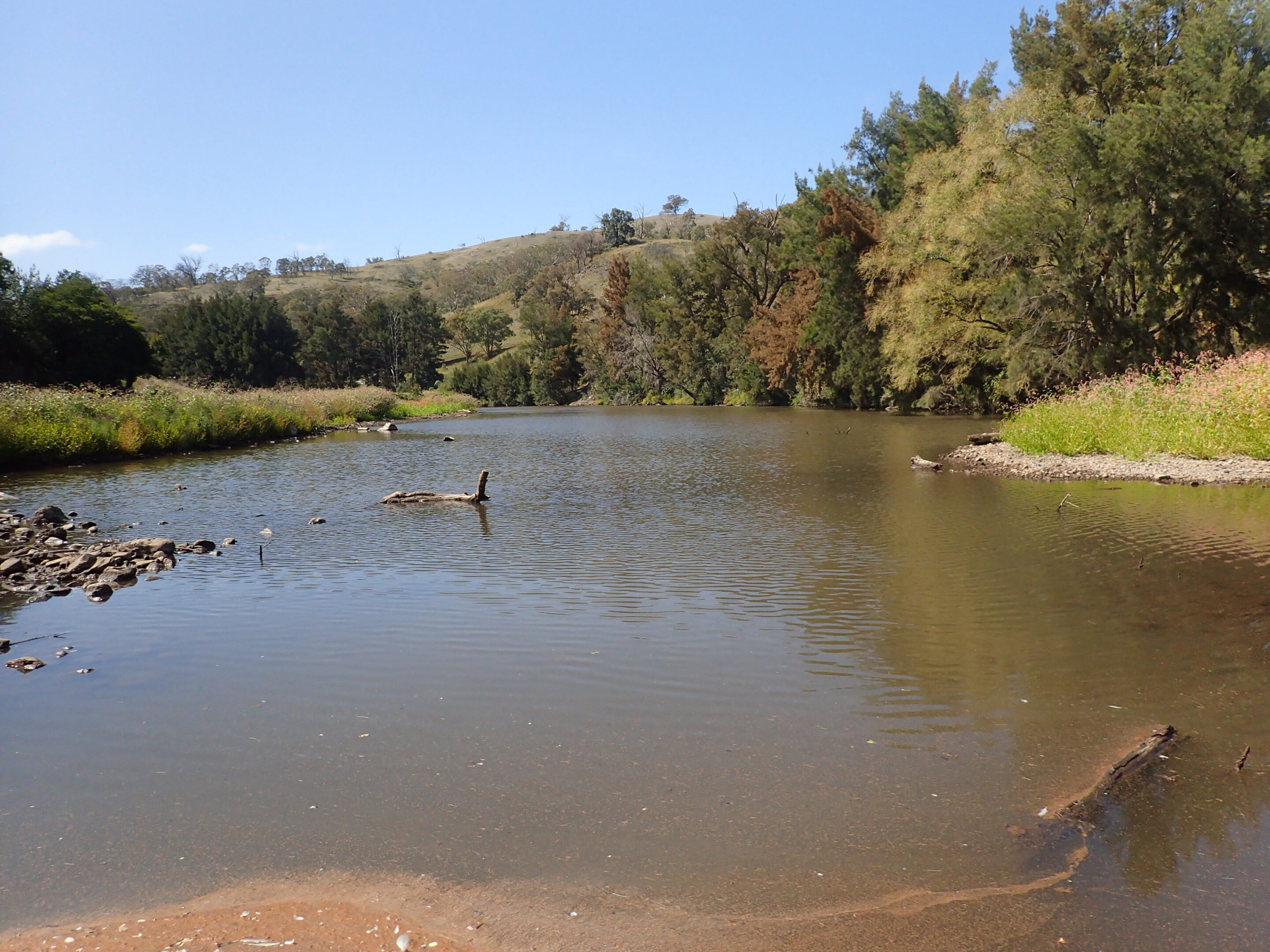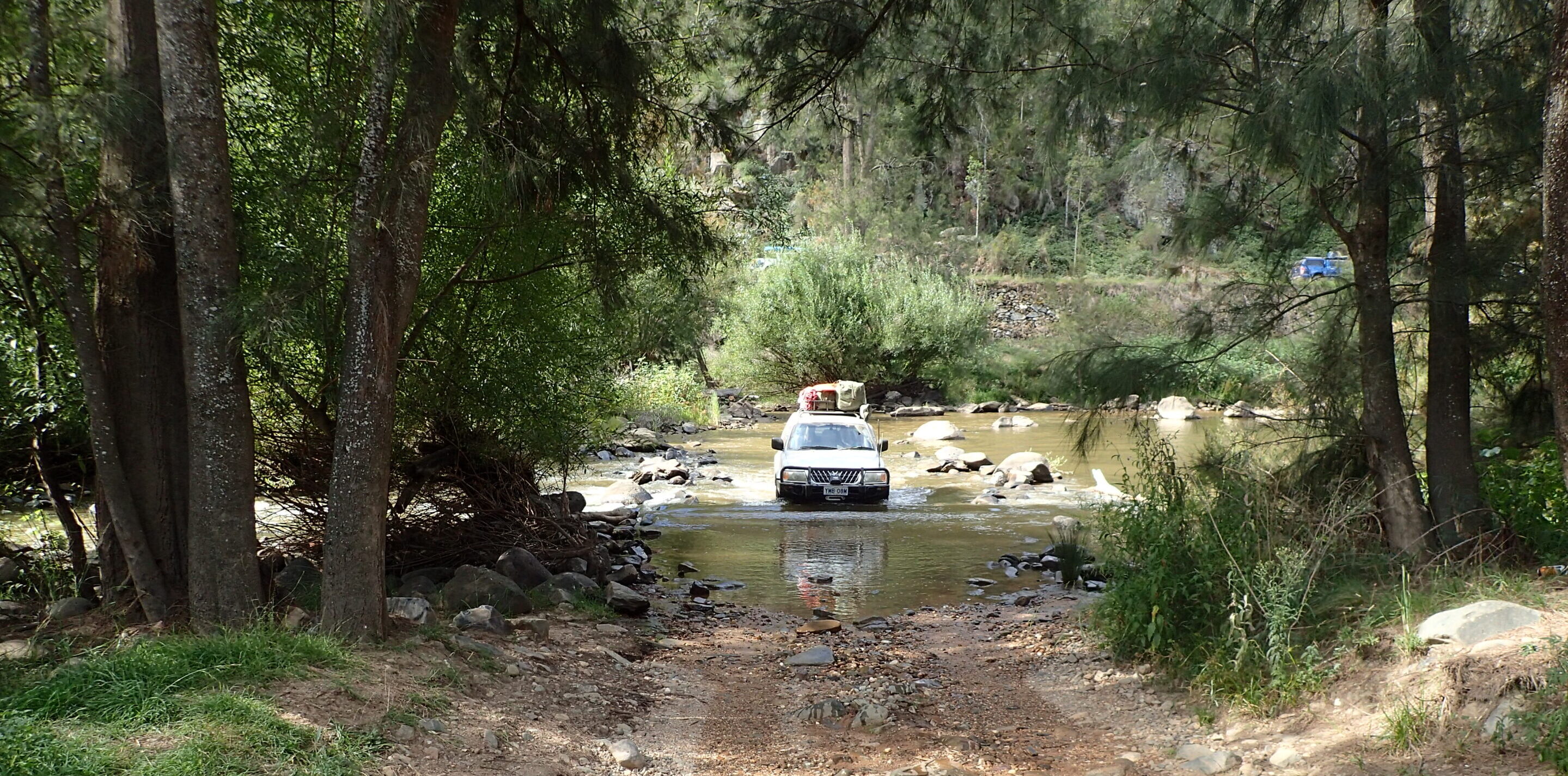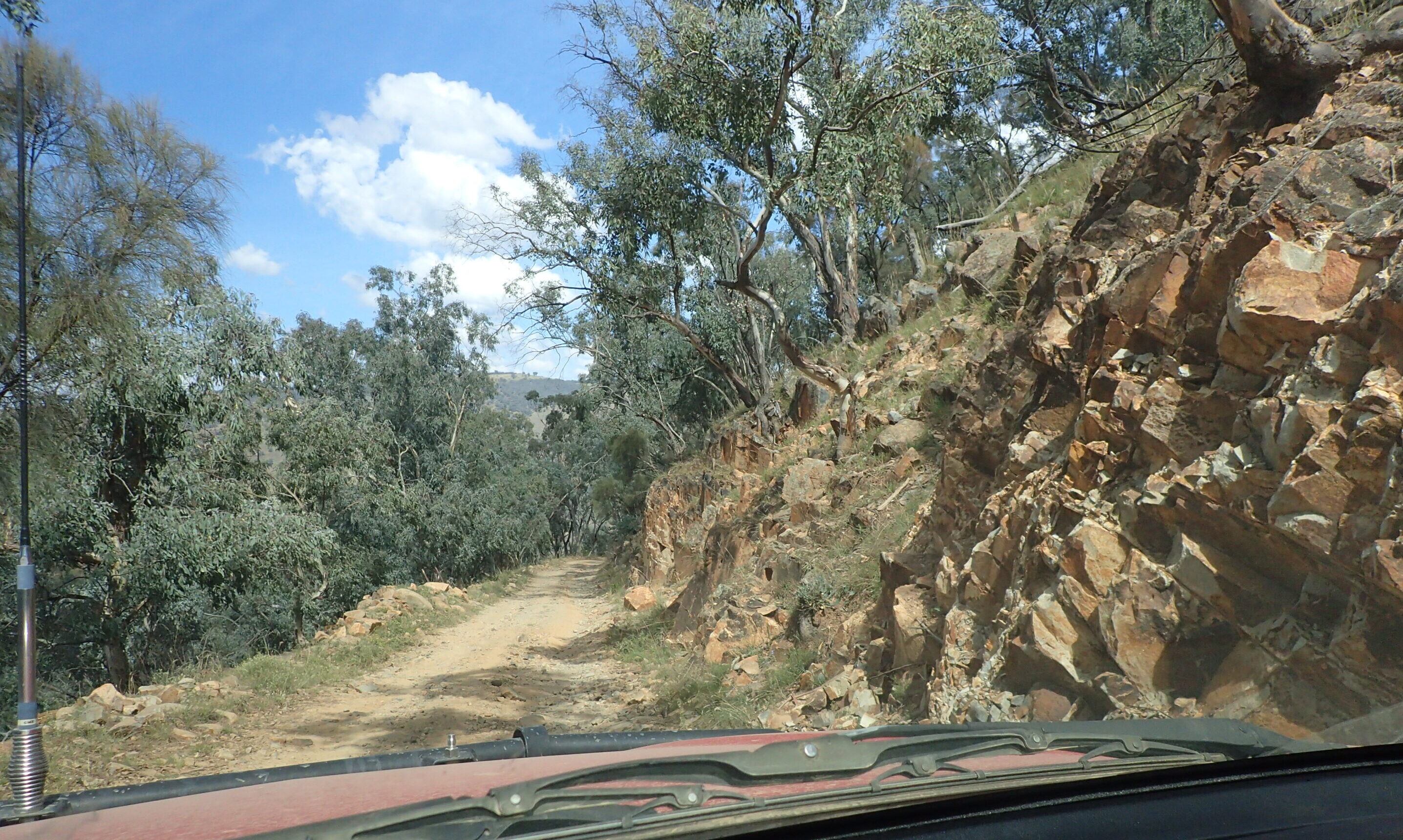 Back on the dirt we commenced our journey on the Bridle Track.  The track was originally built for horseback riders providing a link to Bathurst.  Today it is a rough and narrow road down the side of a steep valley with sharp cuttings into the hillsides.  At the valley floor you reach the Macquarie and Turon Rivers.  It is accessible to 4WDs only.  Thankfully we only met two cars travelling in the opposite direction.  The track once linked Hill End and Bathurst but due to a rock fall at Monaghan’s Bluff in 2010 the road no longer connects the two towns.