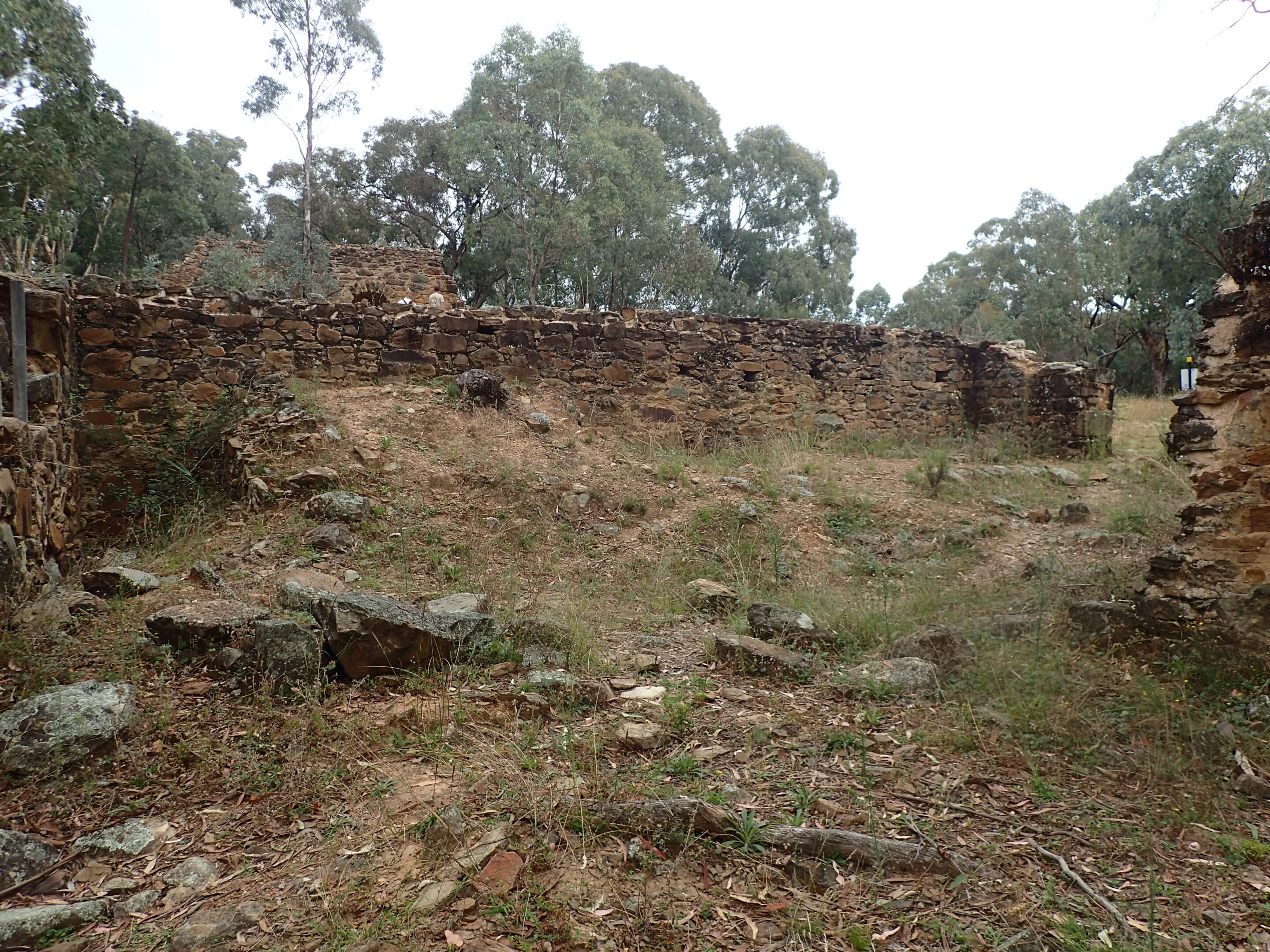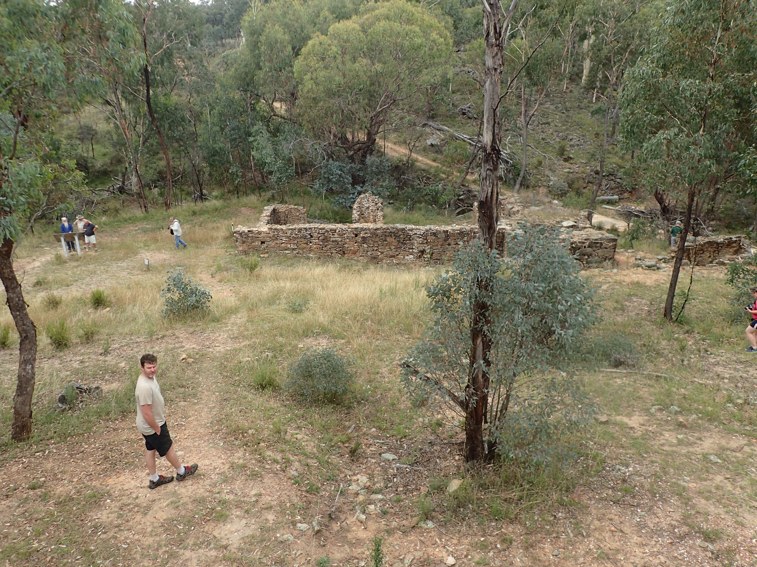 Back into our vehicles we headed to the Cornish Roasting Pits.  This was a very interesting area and well worth a visit.  Established in 1855 by the Colonial Gold Mining Company, the roasting pits were used to make the process of extracting ore easier.  Quartz gravel and timber were layered into the pits and roasted thus weakening the ore and making it easier to extract the gold when crushing it in the battery.  The pits were operated by Cornish miners.  Unfortunately the process wasn’t so successful and the operation went bust within a year.  The pits and the old battery site can still be seen.