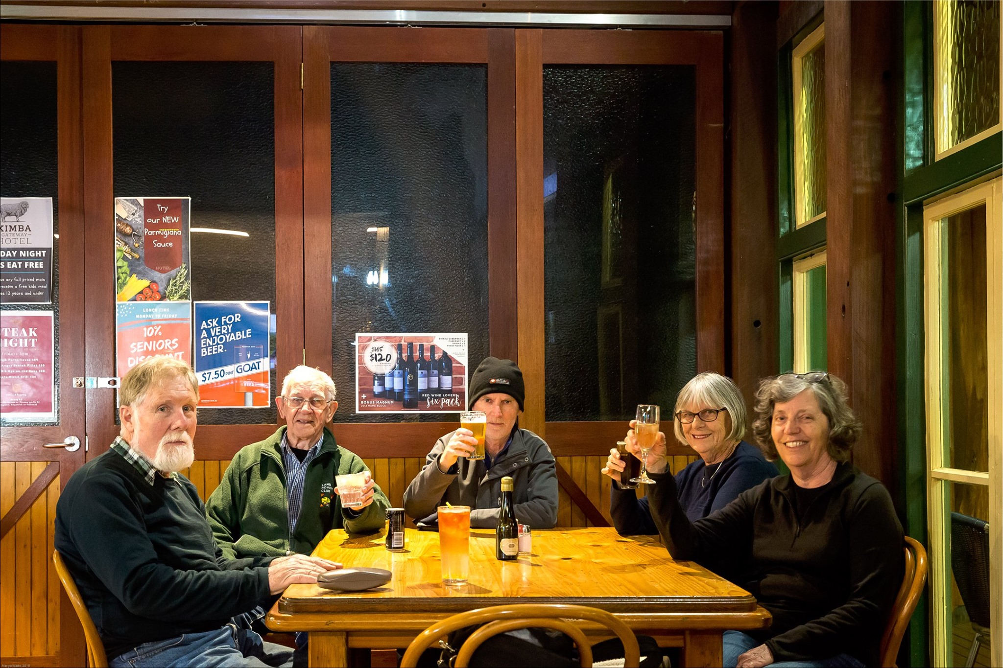 Meanwhile, Annie and Ian left Canberra late Friday after work and zoomed to Narrandera for the night before heading to Paringa to await the arrival of the Wade Wanderers on Sunday evening. The Paringa CP is interesting; fees are $30 cash or $35 credit card, and you get a 10% discount card for use at the Paringa pub, across the road. This led that evening to the first of several pub meals which we enjoyed together during the trip.